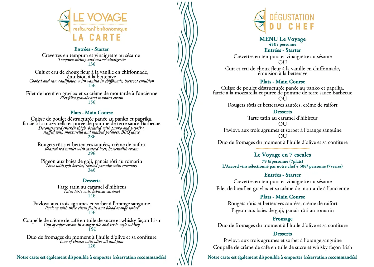 Au Restaurant Le Voyage, nous vous invitons à découvrir les saveurs d'une aventure culinaire unique.